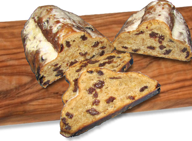 Butter-Stollen aus Dinkel mit Früchten oder Weizen hell  mit Orangeat und Zitronat