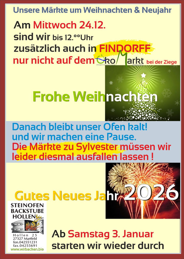 Die Feiertage zum Jahresende liegen dieses Jahr recht ungünstig und weil schon immer wieder mal gefragt wird...